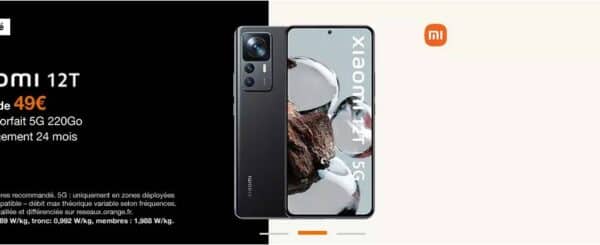 Offre du moment : un Xiaomi 12T à partir de 49 € avec un forfait 5G de 220 Go