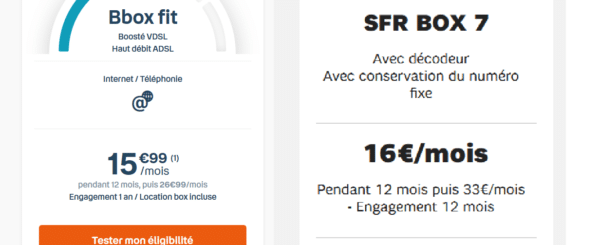 Nombreux sont les consommateurs n’ayant pas la possibilité d’accéder à la fibre optique. C’est pourquoi les opérateurs se lancent tous à la commercialisation d’une box internet ADSL. Si cela vous concerne, retrouvez dans cette sélection deux abonnements box Internet ADSL pas chers du marché. Chacun est en promotion pour 16 €/mois, il vous suffit de […]