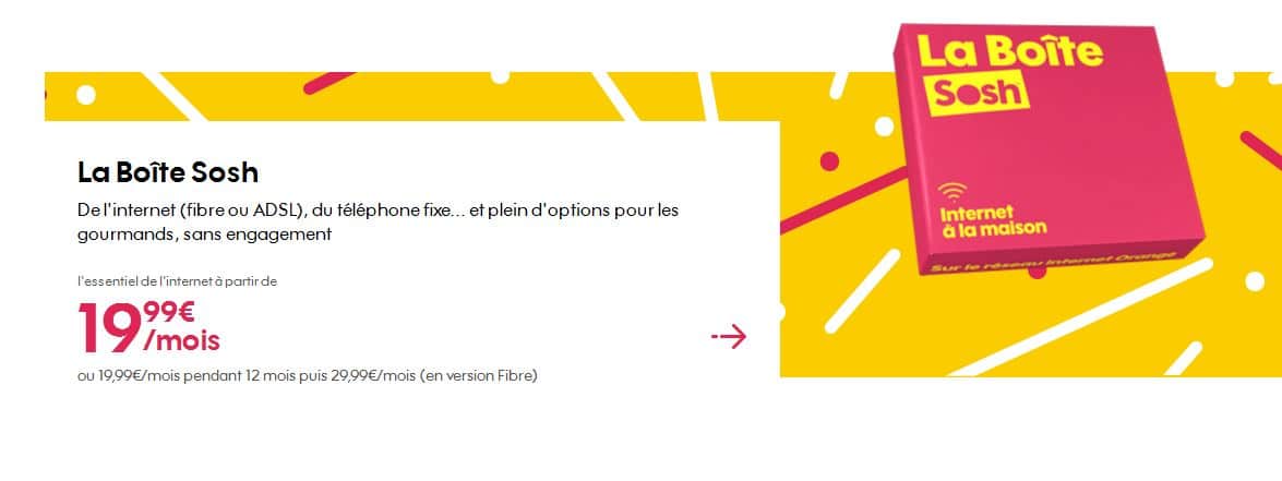 Bon plan Sosh : la Boîte Sosh Fibre en promo à 19,99 €/mois pendant un an jusqu’au 8 avril 2020
