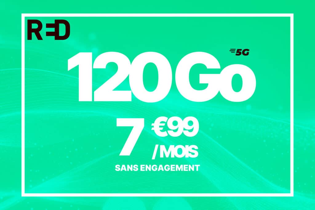 RED by SFR met actuellement en avant un forfait 5G à 7,99 euros par mois, incluant 120 Go de données en France et 30 Go supplémentaires utilisables depuis l’Europe et les DOM. Une formule bien pensée, qui combine confort d’utilisation, data généreuse à l’étranger et le tout sans engagement.