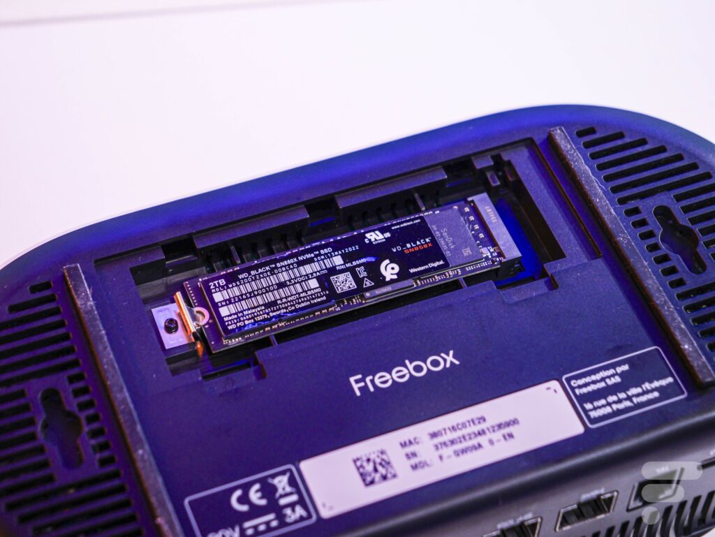 Sous le capot, elle conserve l’ADN « geek » de Free : elle dispose d’un emplacement pour SSD NVMe (non fourni). L’ajout de ce composant permet de transformer la box en un véritable serveur NAS ultra-rapide pour stocker, partager et sécuriser des données en local, accessibles depuis n’importe quel appareil connecté au réseau.