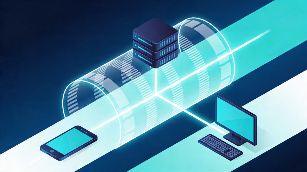 Quand vous ouvrez votre application VPN et que vous cliquez sur « Connecter », tout se met en place en arrière-plan. Pour que votre appareil puisse parler au serveur distant sans exposer vos données, il lui faut un cadre commun. C’est exactement le rôle du protocole VPN. Plus simplement, c’est lui qui décide comment vos données sont emballées, chiffrées, envoyées, puis déchiffrées à l’arrivée.