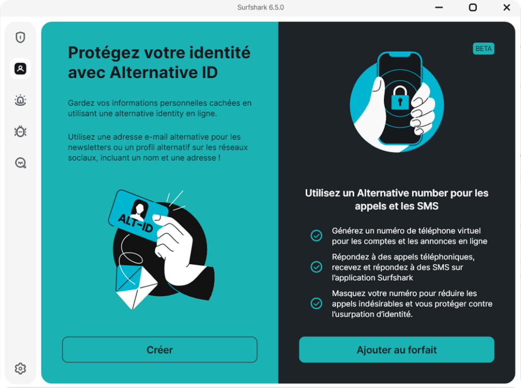 Encore plus fort, une option Alternative Number (disponible en bêta ou en ajout payant selon l’offre) permet de créer un numéro de téléphone virtuel. Celui-ci sert à recevoir les SMS de confirmation ou à filtrer les appels, agissant comme un bouclier très efficace contre le démarchage téléphonique et le spam, directement depuis l’application Surfshark. C’est une couche d’anonymat supplémentaire, parfaitement intégrée, qui évite d’exposer son numéro réel sur les petites annonces ou les formulaires en ligne.